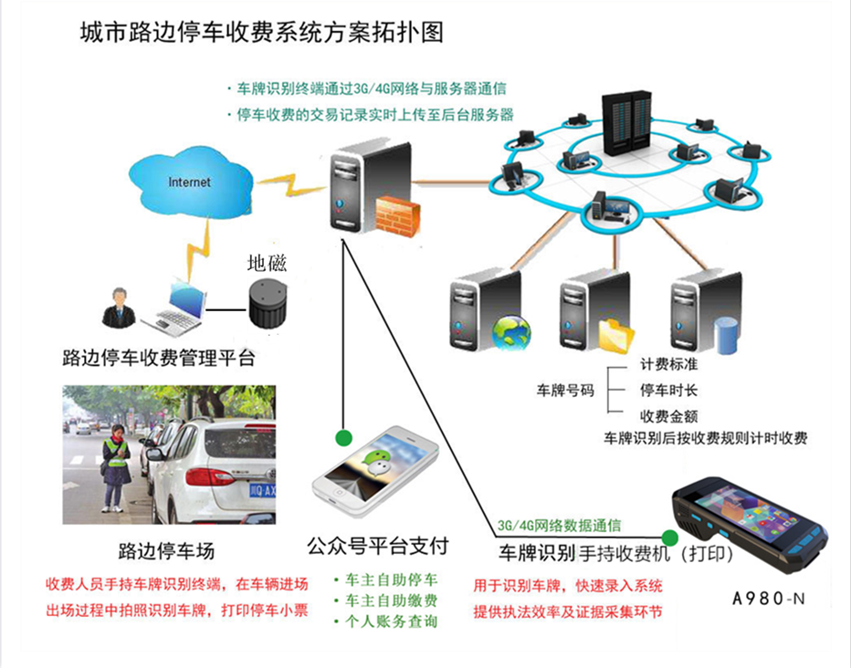該系統(tǒng)平臺預留拓展接口,可以實現(xiàn)與城市監(jiān)管平臺及城市交通車輛管理部門監(jiān)管信息對接,是實現(xiàn)城市管理與交通車輛管理現(xiàn)代化的重要環(huán)節(jié)。通過運營商網絡或無線寬帶網絡技術的應用,實現(xiàn)信息源的采集,保證對任一占道停車場實行全區(qū)域、全時段狀況的